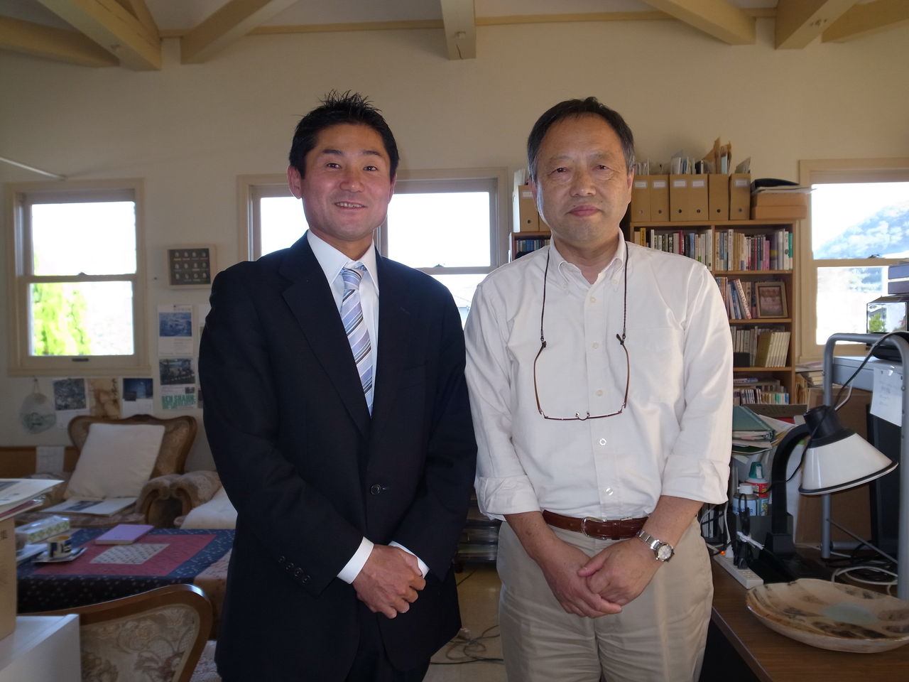 10/15日号を発刊したばかりの、日々の新聞様を訪問しました。瀟洒な外観とともに、編集室はあたたかみのある木のぬくもりが感じられる、落ち着く場所でした。編集人の安竜様から、いわき市の課題、過去の経緯等をお聞かせいただきました。