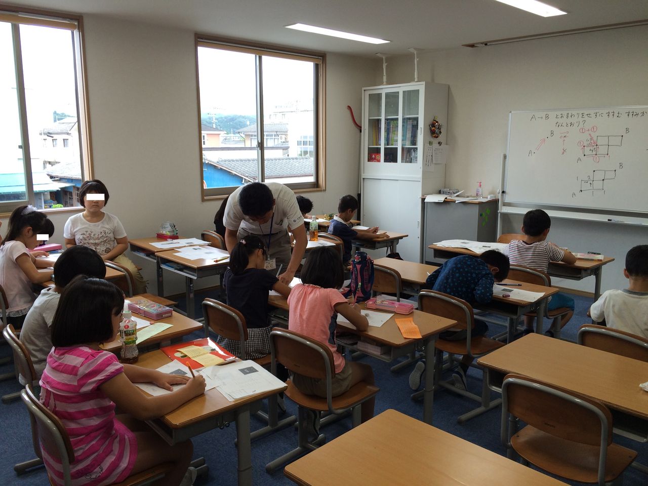 参加しているのはときわ会グループの職員のお子さん達で、ご小学校高学年のクラス、低学年のクラス、それぞれ常時15-20人くらいが勉強していました。
