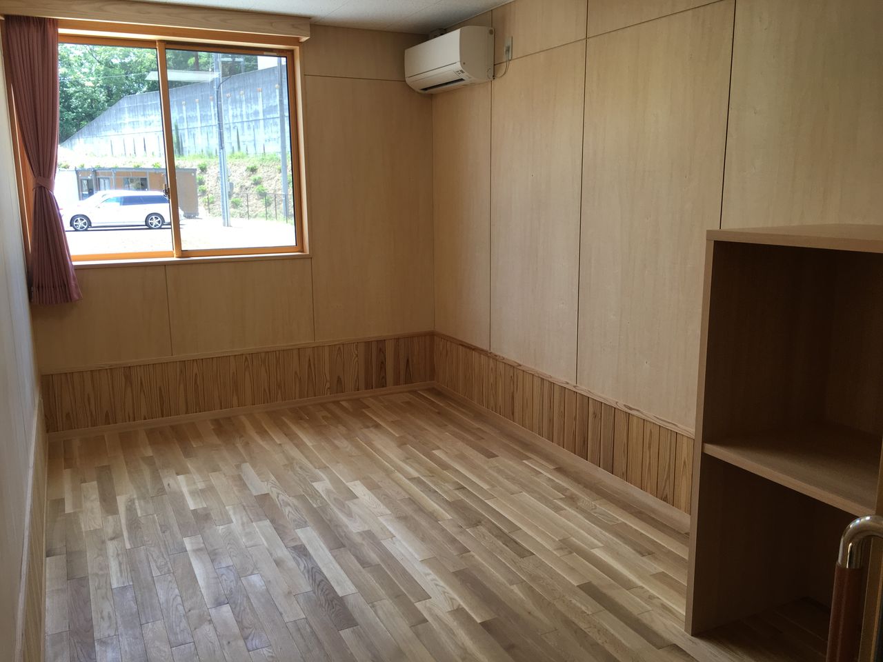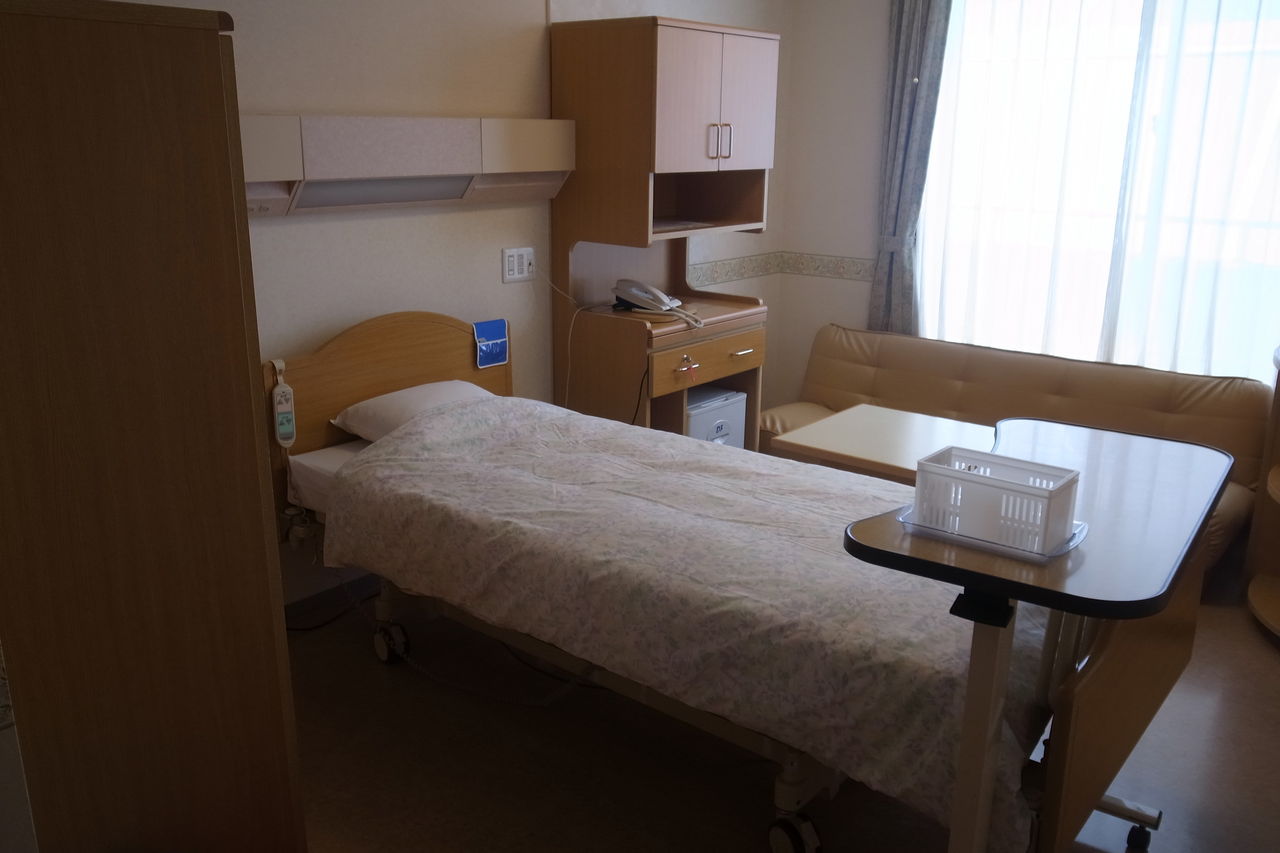 部屋は個室で、8-10畳くらいはあるでしょうか。まだ家具が置かれていないので、とても広く感じました。約12億円もの事業費を投じられて建設された建物は、単純計算でいくと建物の建築坪単価は、約160万円/坪。ゆったりとした空間の創造には、それなりのオカネがかかっています。