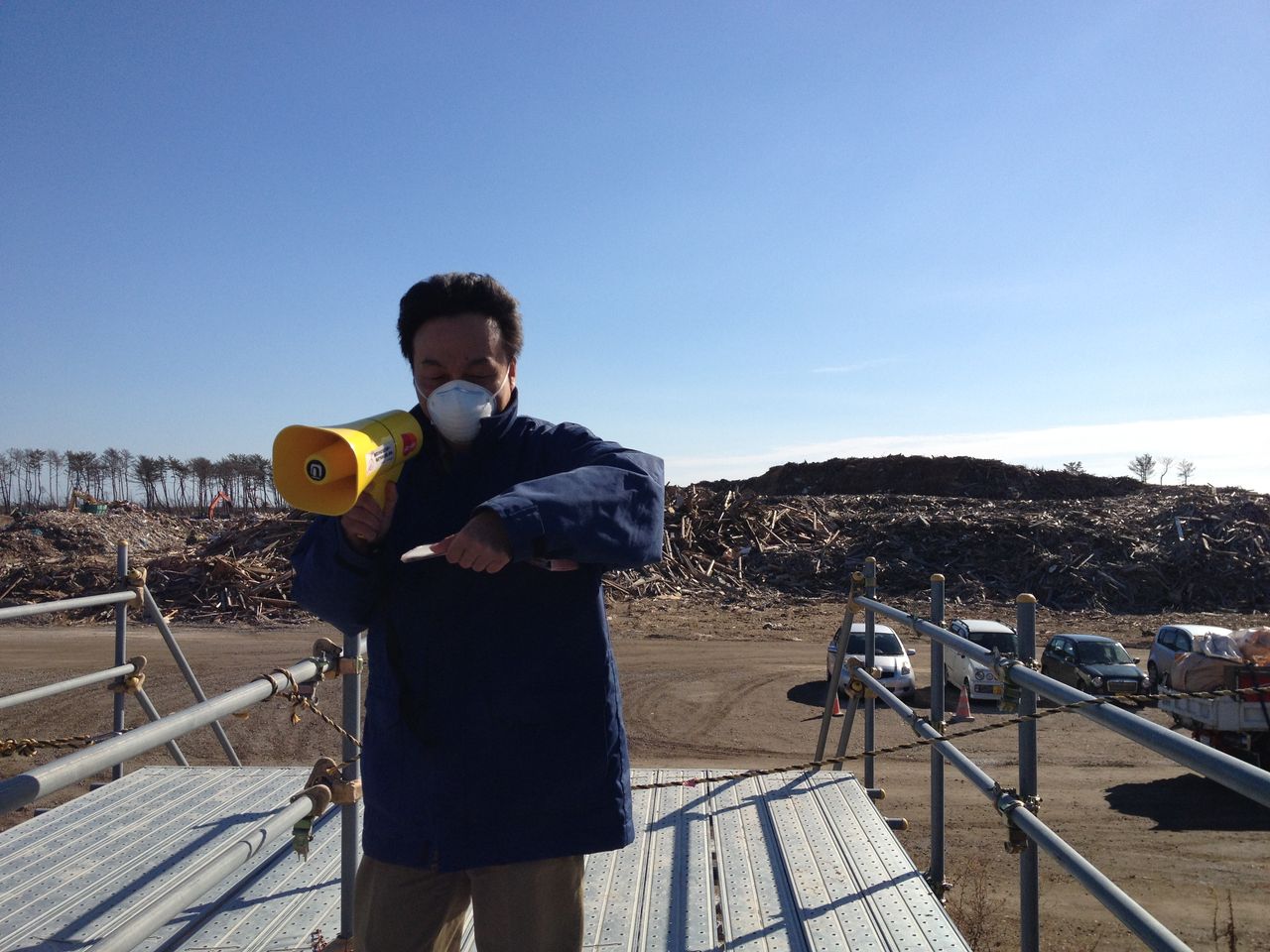 仙台市のがれき発生量は135万トンで、現在70万トンを処理し、処理率は50%を超えています。一方、津波が運んできた土砂堆積物が、それとは別に122万トンあり、今後公共土木工事等に使用していくそうです。木くず、瓦、廃家電、廃タタミ、プラスチック等がそれぞれ分別された状態で積み上げられており、最大限リサイクルしていくという強い意志を感じました。仮設の焼却プラントが、がれき集積場に設置されていました。仮設といっても、川崎重工製でリース料は30億円を越え、通常のごみ焼却炉と能力はほとんど同じ、300トン/日の能力があります。いわきと違うのは、放射能の問題がないので、通常の可燃ごみとまったく同じく焼却し、焼却灰を産業廃棄物として、処分場埋め立てできることです。ちなみに焼却灰の放射能は、過去最大で1,380bq/kgなので、埋め立可能な基準値の8,000bq/kgを大きく下回っているとのこと。