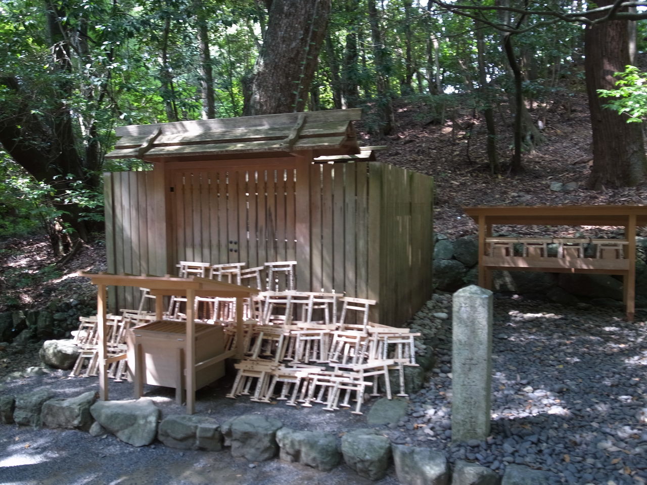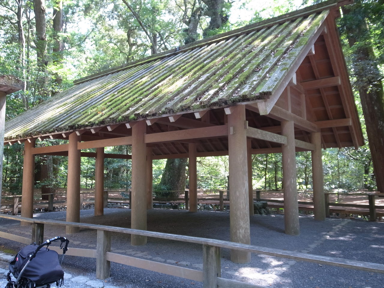御贄調舎(みにえちょうしゃ)です。内宮のお祭りの際に、外宮の神、豊受大御神をお招きして、正宮の御前で鮑を調理する儀式が行われるそうです。これは豊受大御神が天照大御神のお食事を司る神として伊勢に招かれたことを象徴しています。