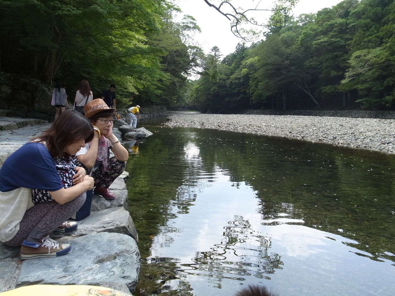 今年の五十鈴川の水量は、異常に少ないそうですが、川の上流は(人が立ち入れない)神域ですから、清流には間違いありません。ハゼの仲間らしき小魚をたくさん見つけることができました。