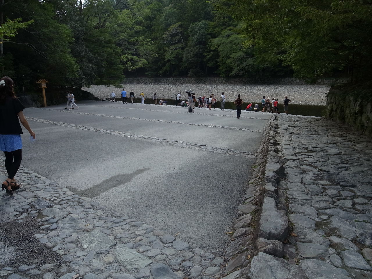 1年間に600万人、20年間で1億人以上が渡るという宇治橋。その間、橋の表面が数センチ減るそうです。なお式年遷宮に内宮で使用される木材は、船曳きといって五十鈴川を使って船で運ばれ、この河原から引き上げられます。