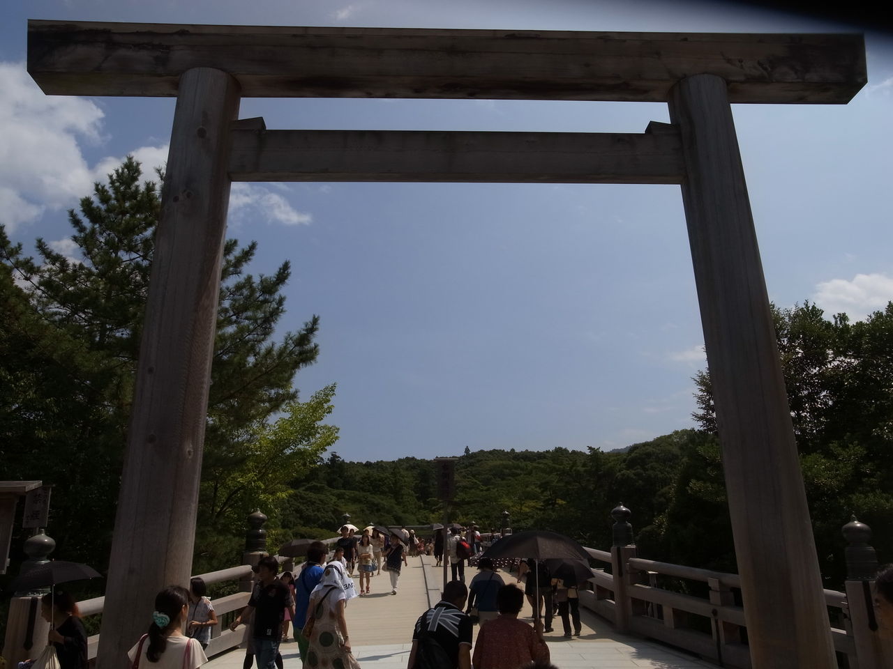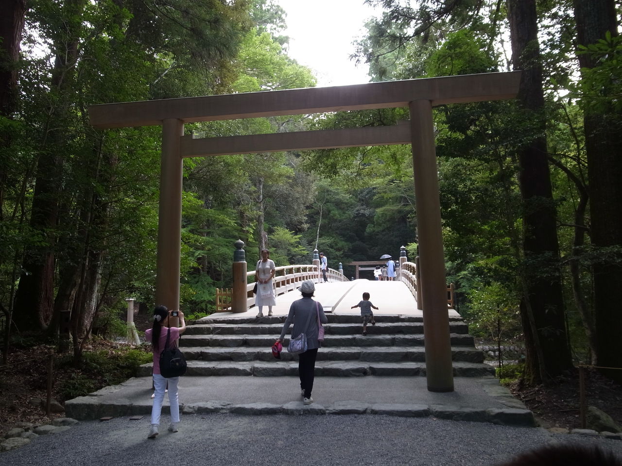 内宮の表玄関が宇治橋です。式年遷宮の一貫として、一足早く新しい橋に架け替えられていました。宇治橋から右側通行になります(外宮は、左側通行)。鳥居の前で一礼し、聖界に入ります。