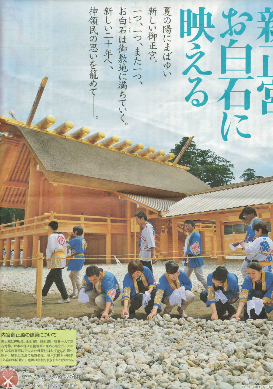 内宮を撮った写真が、「いせびとニュース第12号」表紙に掲載されていましたので、転載します。お白石行事の際に、神領民が内宮の最深部に入ったときの写真で、とても貴重なものです。