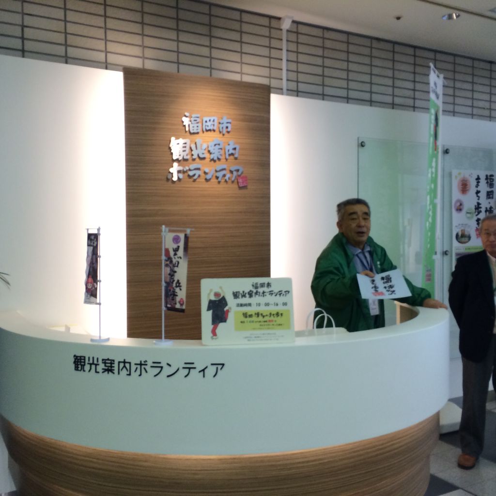 福岡市役所1Fロビーに、福岡市観光案内ボランティアのブースがあります。毎日、櫛田神社をはじめとする博多のまち歩きしながら、博多の歴史や文化に触れる約1時間の定時ツアーが組まれています。