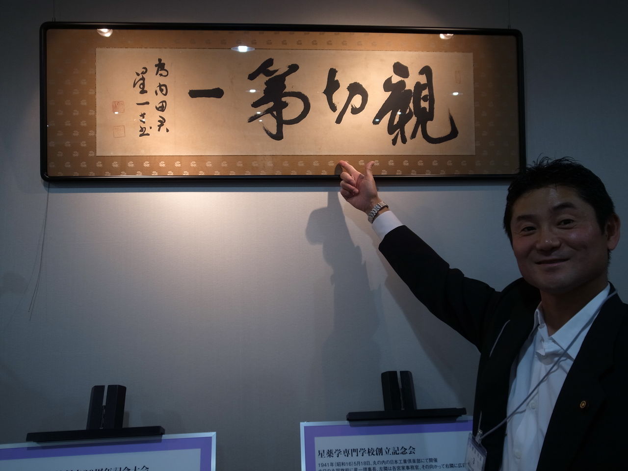 星一のフレーズで有名なのはなんといっても、「親切第一」。長男にその名をつけるほど、他人に尽くすことで国家の利益を考えていた人でした(ショートショートで有名な作家、星新一は星一の長男、本名は星「親一」。親切第一を略した親一の意味です)。その直筆の書がこちら。