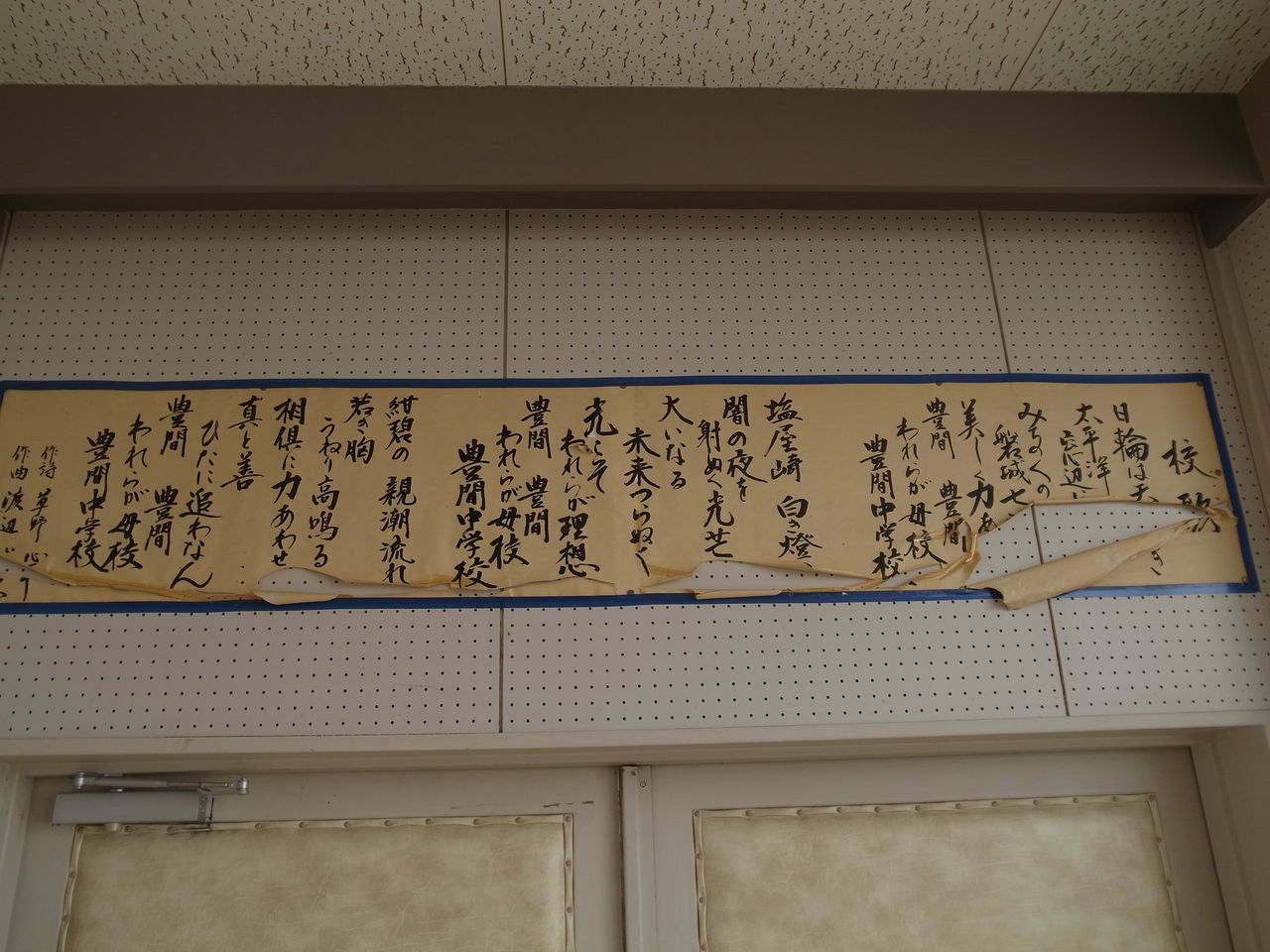 豊間中の校歌。「太平洋」「塩屋崎」「紺碧の親潮」等、海岸沿いの中学校らしい校歌です。