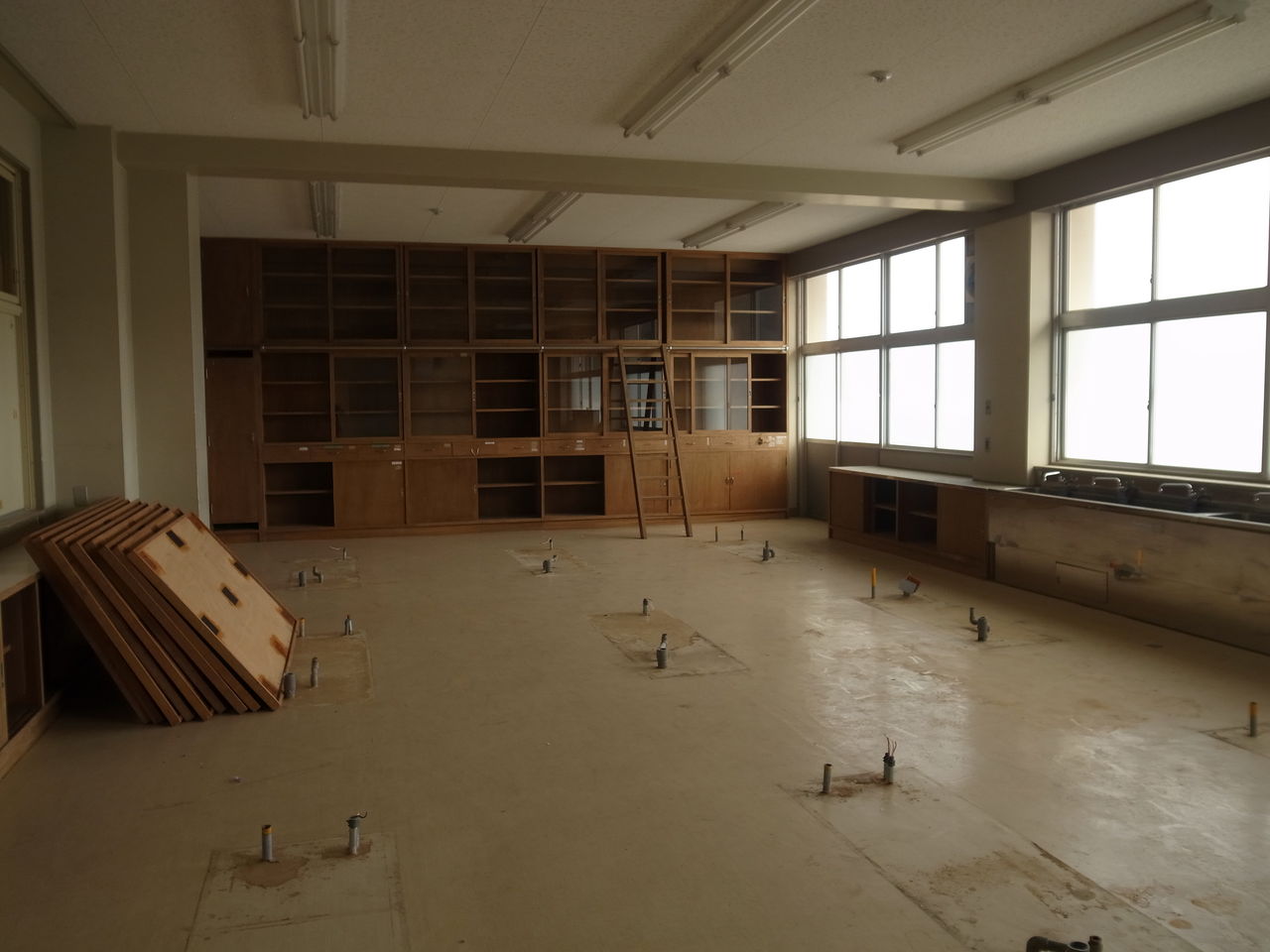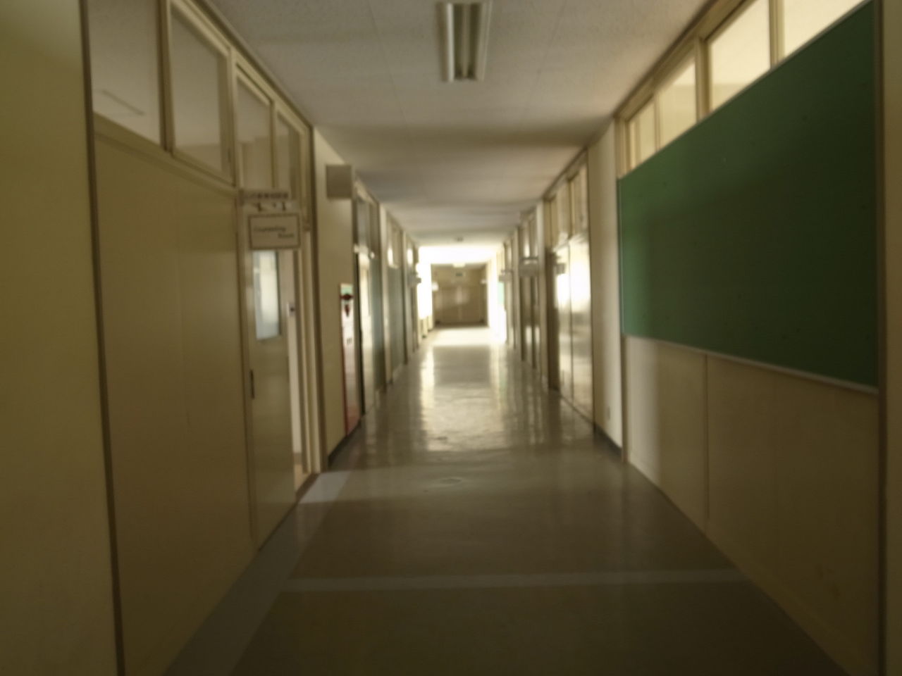 体育館は津波で壁面の大部分が損傷・破壊されましたが、校舎建物は、大きなヒビ等が入っているわけでもなく、内部だけ見れば被災した建物の中にいるとは思えませんでした。普通の休日?と思うくらい、静かな校舎。