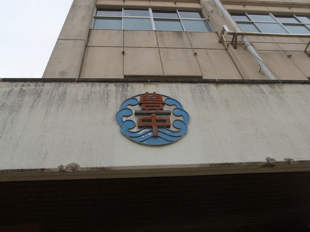 豊間中の校舎入口に取り付けられていた校章。これはいったい、どう処理されるのでしょうか。