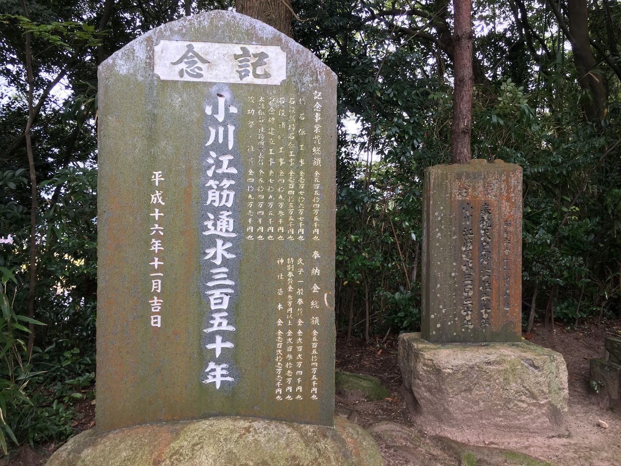 境内には「小川江筋通水350周年記念」の巨大な石碑がありました。神社創建当時だけでなく、その後も氏子?らの寄附等が続いていることの証です。
