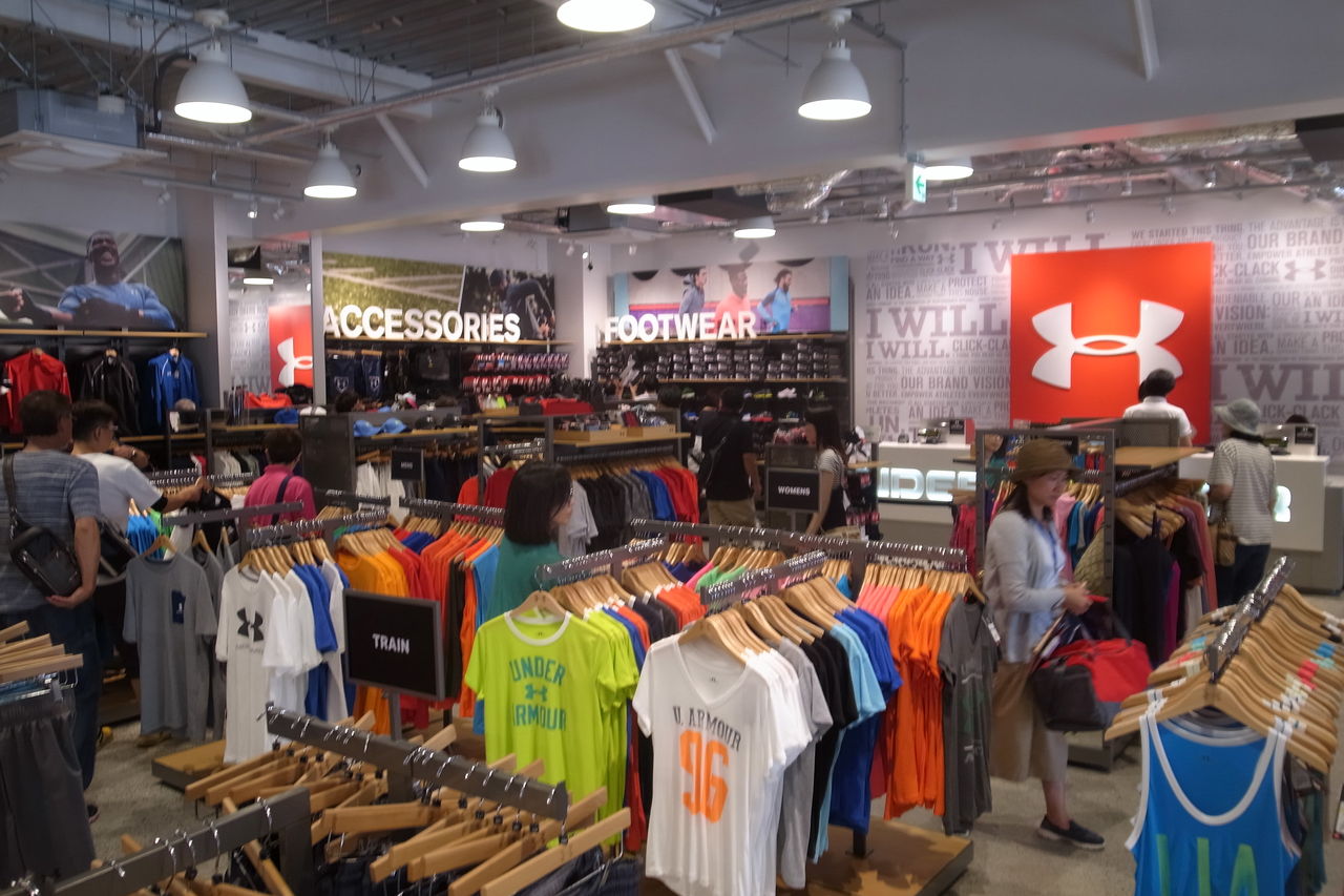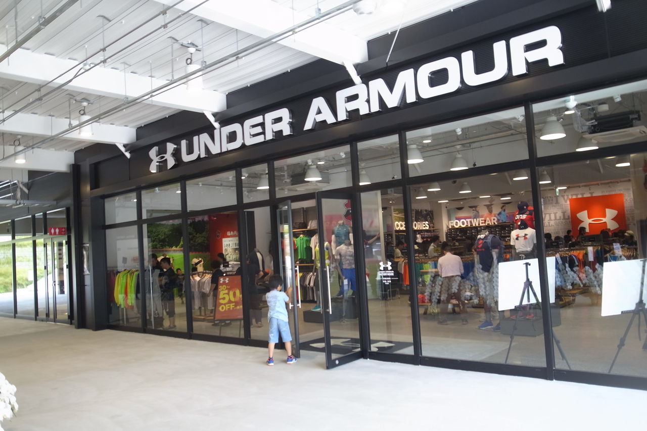 クラブハウス棟の1階には、アンダーアーマーのアウトレット店舗が入居しています。通常の価格より5-7割安いとの触れ込みですので、ぜひショッピングを。