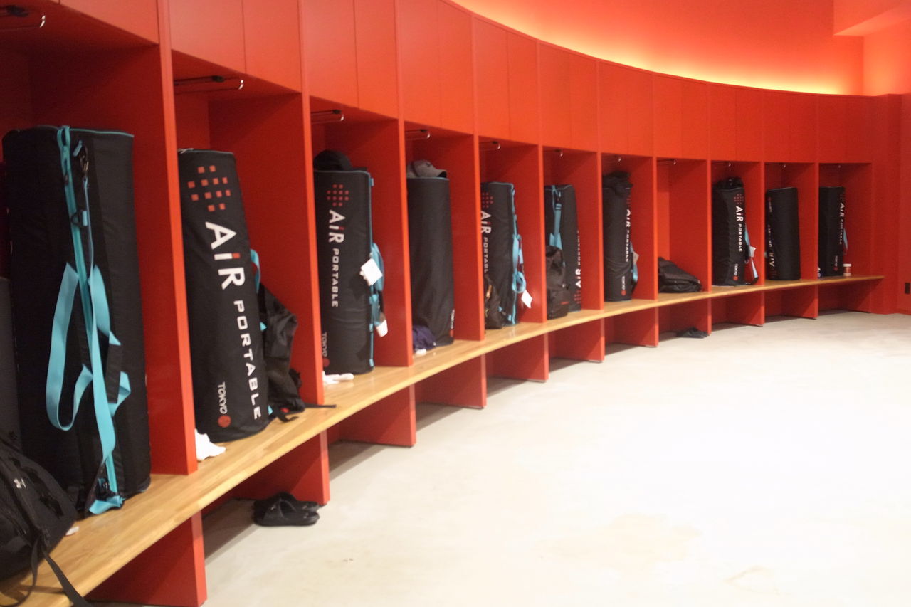 いわきFCの選手クラブハウスを見せていただきました。専用ロッカーは、整然と片付けられていて、選手としてというよりも人としての、整理整頓が行き届いていました。