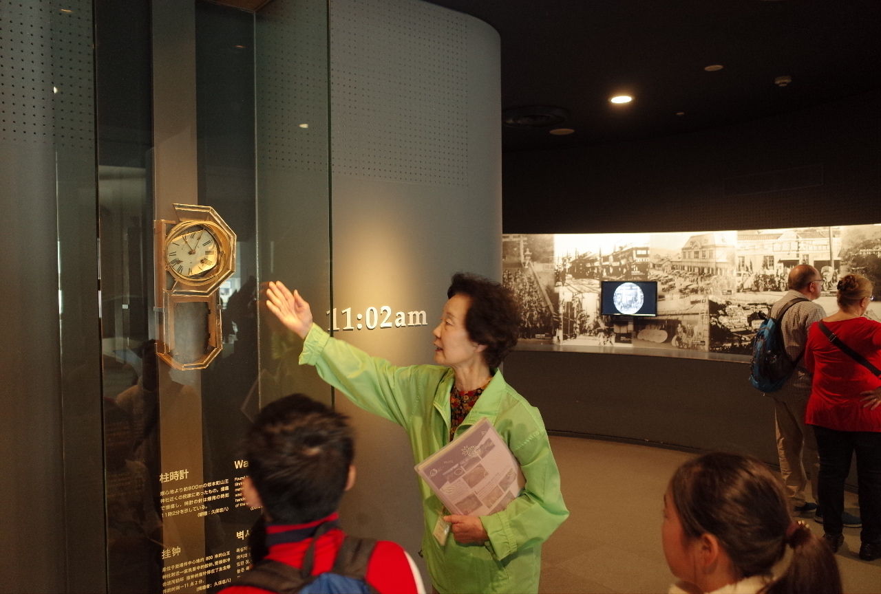 観光ボランティアの方が丁寧に説明してくれました。自身も小さいころに長崎市内で被ばくした被災者だそうです。被ばくした人々が次々と亡くなっていく中で戦後70年の間、どんな思いでこのボランティアを続けてきたのでしょうか。