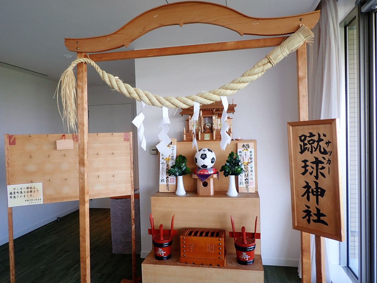 本館4階の展望室にはボールを祭った「蹴球[しゅうきゅう]神社」がありました。御利益あるかな?