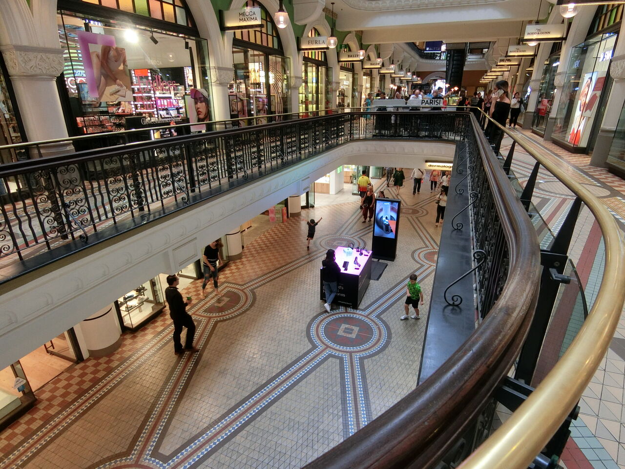 縦に細長く、大通りに面していることもあり、ウィンドウショッピングしながら通行していく地元民が多いようです。ブランド品ばかりではなく、地元のお店やカフェもあって、地元に愛されているアーケードだなあと感じました。