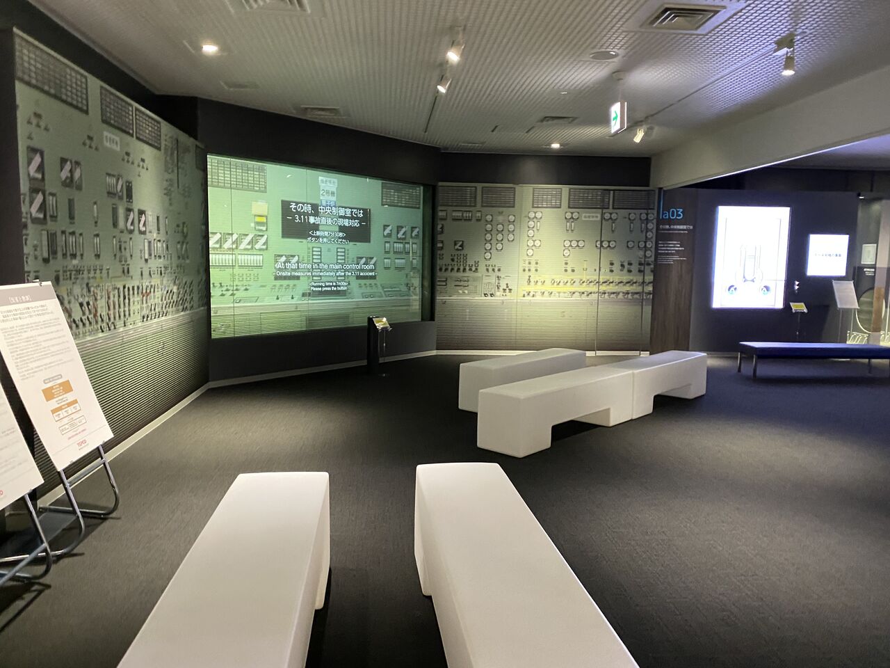写真は、廃炉資料館の2階にある、中央操作室を模したもの。展示は動画が中心で、実際に勤務していた方のインタビューが多くありがとうございます。、かなり臨場感がありました。